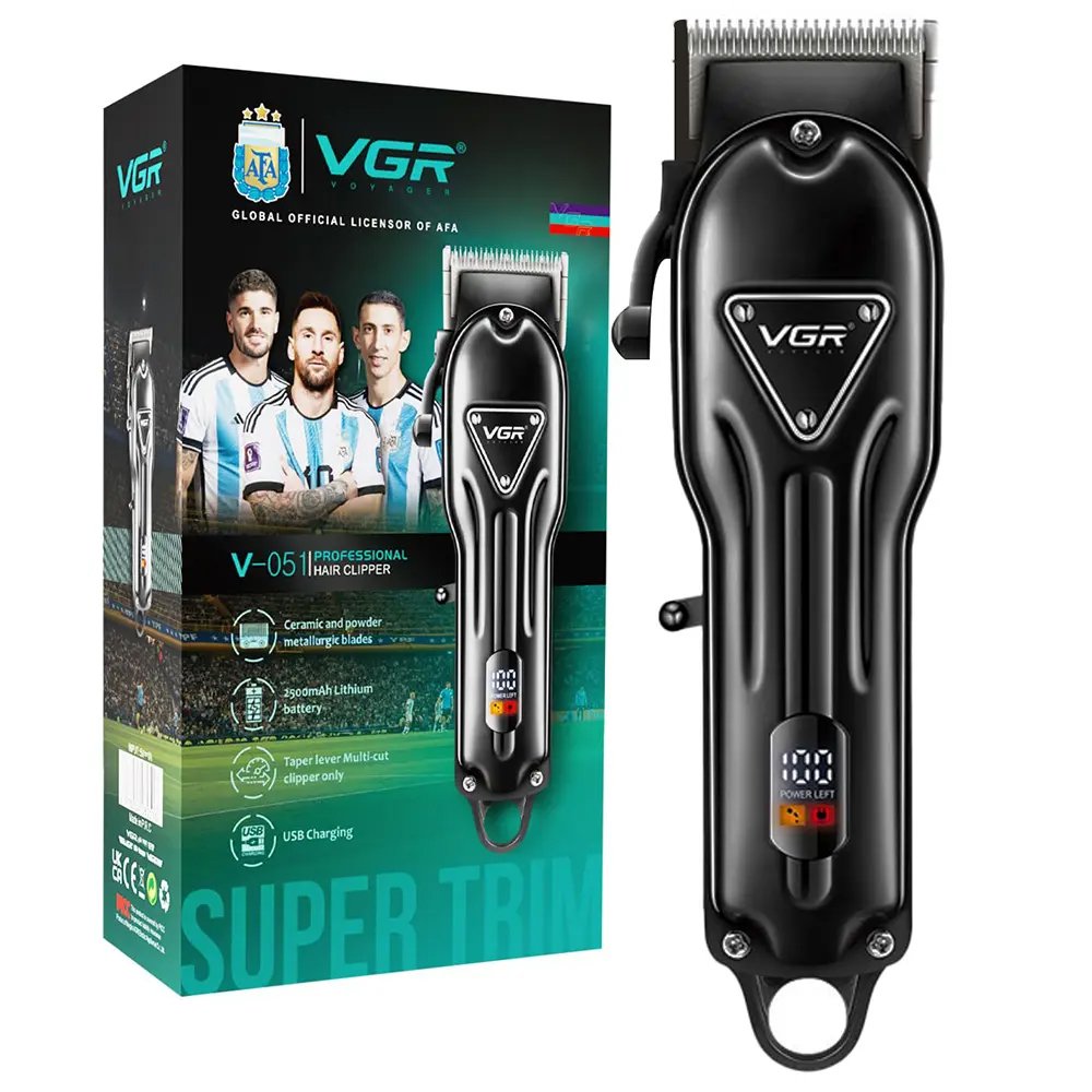 VGR V-051 Professional Hair Clipper & Salon Trimmer – Digital Display, Ceramic Blades, 300 Min Runtime, 4 Combs